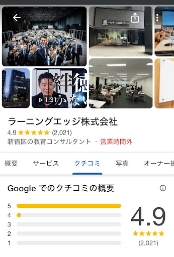 Googleの口コミ2,000件以上、☆4.9の高評価をいただくなど、多くのビジネスリーダーに好評をいただいています。